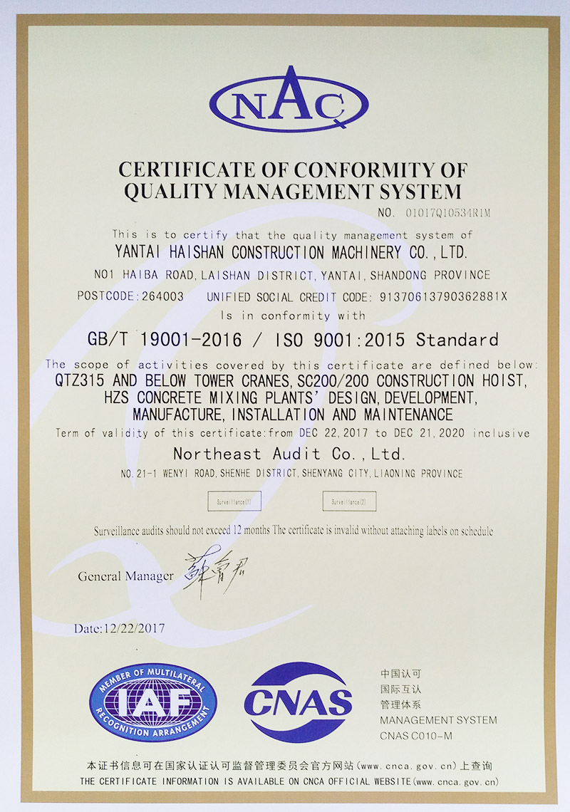 煙臺海山建筑機械有限公司坐落于山東省煙臺市高新技術(shù)開發(fā)區(qū),占地面積160000多平方米,目前擁有1200余名員工。秉承誠信·勤奮·執(zhí)著·創(chuàng)新的企業(yè)發(fā)展理念,以人才·質(zhì)量·管理·服務為企業(yè)發(fā)展途徑...