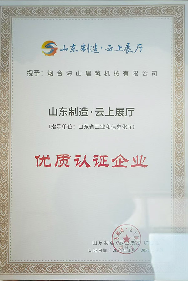 2024年獲得山東制造.云上展廳 優(yōu)質認證企業(yè)